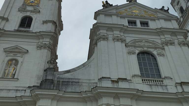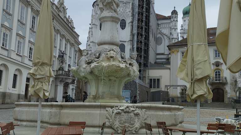 Blickfang auf dem Domplatz ist natürlich der Stephansdom mit seiner strahlend weißen Fassade und den grünen Kuppeldächern der Türme. Aber auch die Bebauung auf den anderen Seiten des Platzes, die sich seit dem 12. Jahrhundert entwickelt hat, ist die Betrachtung wert. Da ist zunächst die Alte Residenz der Fürstbischöfe gegenüber vom Dom, in der sich heute die Diözesanverwaltung befindet. Außerdem gibt es rund um den Platz eine Reihe ehemaliger Domherrenhöfe. Ein besonders schönes Gebäude ist auch das ehemals fürstbischöfliche Gästehaus, das schon Kaiserin Maria Theresia beherbergte und in dem sich heute ein Café befindet. Nicht zu vergessen das Denkmal des ersten bayerischen Königs Maximilian I. Joseph im Zentrum des Platzes. Heute findet man auf dem Platz rund um das Denkmal Marktstände, ursprünglich war der Platz den Domherren und dem Klerus vorbehalten, die Öffentlichkeit hatte keinen Zugang.