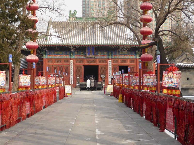 Ein Tempel mit unheimlicher und faszinierende Ausstrahlung. Gebaut in der Yuang-Dynastie und mit viel Sorgfalt renoviert. Bis heute wird der Tempel aktiv genutzt. Der Tempel liegt mitten zwischen Hochhäusern und das ursprüngliche Eingangstor wurde durch eine vierspurige Straße vom Rest der Anlage getrennt. Die etwas morbide Ausstrahlung ist unheimlich, aber faszinierend. Wer über die Schwelle tritt, landet in einem taoistischen Hades, wo verdammte Seelen über ihre Verfehlungen nachgrübeln und versuchen, sie durch Buße wiedergutzumachen. Jeder Verfehlung ist ein eigener Raum gewidmet; so z.B. Raum der Abtreibung, Raum der untoten Seelen, Raum für die Menschen, die Tiere getötet haben, Raum für wandernde Geister, Raum für die die Anwendung 15 verschiedener, gewaltsamer Todesarten, Raum für tief sitzende Krankheiten. Die große Daiyue-Halle ist dem Gott Taishan geweiht, der über die 18 Stufen der Hölle regiert. Geöffnet Dienstag bis Sonntag 9:00 - 16:30 Uhr.