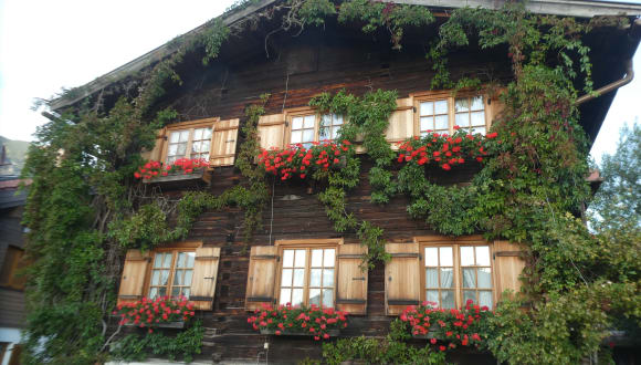 Eines der schönsten Gebäude in der Altstadt von Oberstdorf ist das ehemalige Bauernhaus, welches sich am Frohmarkt 8 befindet. Das in Holzblockbauweise errichtet einstige Bauernhaus stammt aus der ersten Hälfte des 18. Jahrhunderts. Jetzt im August 2023 war das sehenswerte Gebäude von grünen Kletterpflanze mehr oder weniger eingehüllt, an den Fenstern war reicher Blumenschmuck vorhanden – fast ganz so, wie sich Nichtbayern eben das Allgäu vorstellen.