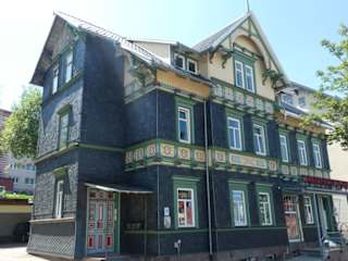 Das ehemalige Kaiserliche Postamt in der Zellaer Straße 12 (Fußgängerzone) ist ein auffälliges, beachtenswertes, mit Schindeln verkleidetes Bauwerk. Es ist eines der schönsten Gebäude / Häuser in ganz Oberhof und wenn man in der Zellaer Straße (Fußgängerzone) ist, so sollte man sich dieses Bauwerk durchaus einmal ansehen. Das ehemalige Kaiserliche Postamt wurde (angeblich) auf persönlicher Anweisung von Kaiser Wilhelm II. von 1889 bis 1890 erbaut. Der Bau dieses Postamtes wurde vom obersten deuschen Postbeamten, dem Generalpostmeister Heinrich von Stephan, bei diversen Besuchen in Oberhof persönlich überwacht. Der Grund für seine Inspektionen in dem kleinen, damals unbedeutenden Ort dürfte aber nicht die direkte Bauüberwachung des Postamtes gewesen sein, sondern seine Jagdleidenschaft, da der Generalpostmeister (angeblich) teils wochenlang auf Einladung des Landesvaters, dem Herzog Ernst II. von Sachsen-Coburg und Gotha, hier auf Jagd ging (bevorzugte Jagdbeute waren wohl die Auerhähne). Das ehemalige Kaiserliche Postamt ist ein Fachwerkhaus, das inzwischen jedoch mit Schieferschindeln verkleidet ist. Es ist ein überaus sehenswertes Gebäude und es fällt einem direkt ist Auge, wenn man durch die Fußgängerzone der Zellaer Straße läuft. Es steht direkt neben dem Rathaus von Oberhof. In dem schönen historischen Gebäude befindet sich inzwischen seit vielen Jahren eine Apotheke.