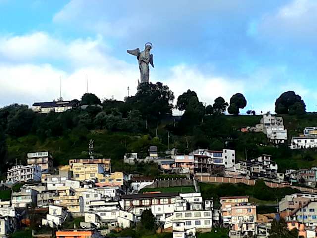 „El Panecillo“, zu Deutsch „das Brötchen“ ist der Haushügel mitten in Quito. Auf dem Hügel hoch über der Stadt thront die etwa 45 Meter große Statue der geflügelten Jungfrau, auch Jungfrau des Brötchens genannt, die aus 7000 Aluminiumteilchen gefertigt ist. Vom Mirador del Panecillo, mit mehreren Aussichtsplattformen, hat man bei klarem Wetter einen herrlichen Blick auf die Altstadt von Quito und das Vulkangebirge. Geraten wird mit dem Bus oder Taxi hochzufahren, da es auf dem Weg nach oben wohl vermehrt zu Überfällen gekommen ist.