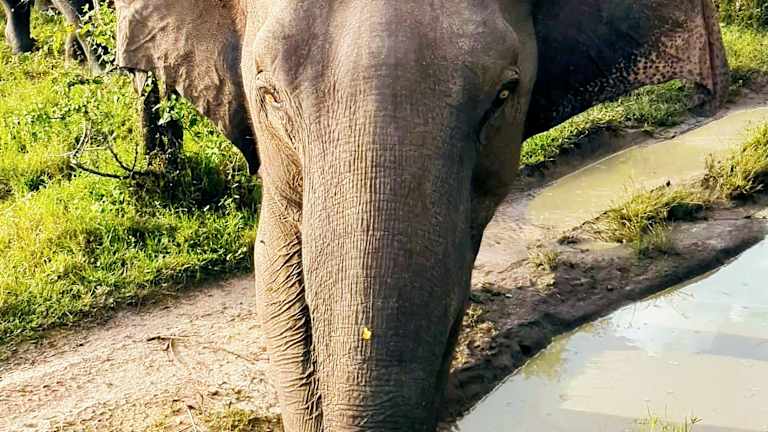 Elefanten füttern und baden sehen