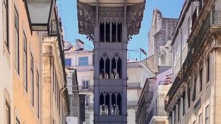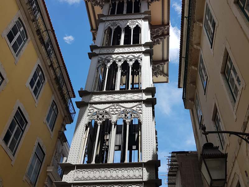 Der Elevador de Santa Justa ist eine imposante Stahlkonstruktion, mittels derer der Stadtteil Baixa mit dem höher gelegenen Stadtteil Chiado verbunden wird. Angelegt im Jahre 1902 und nach Renovierungsarbeiten 2005 wiedereröffnet, transportieren zwei Kabinen bis zu 24 Personen pro Fahrt.