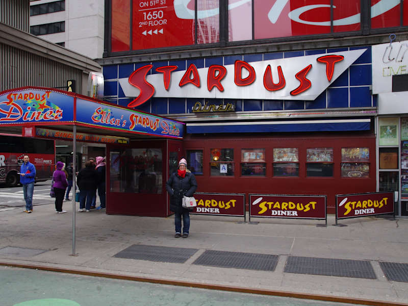 Das Highlight in Ellen`s Stardust Diner sind die singenden Kellner, meist Musical-Darsteller, die wirklich gut singen können und für gute Unterhaltung sorgen. Natürlich geht dann im Laufe der Zeit auch mal der Klingelbeutel rum mit dem zusätzliche Gelder für die Sänger gesammelt werden. Nicht so toll fanden wir, daß unheimlich eng gestuhlt ist und man keine Chance hat zwischen zwei Tischen hindurch zu kommen ohne dies zu verschieben. Man hatte das Gefühl, daß der Gast am Nachbartisch einem fast schon auf dem Schoß sitzt! Der Service war nett, freundlich und aufmerksam, daß Essen eher durschnittlich und wenn man ehrlich ist sein Geld nicht wirklich wert. Es gibt die typischen Gerichte die stark vom Fastfood geprägt sind. Muß man mal gesehen haben ,alleine schon wegen dem Fun-Faktor, aber nicht wegen dem Essen!