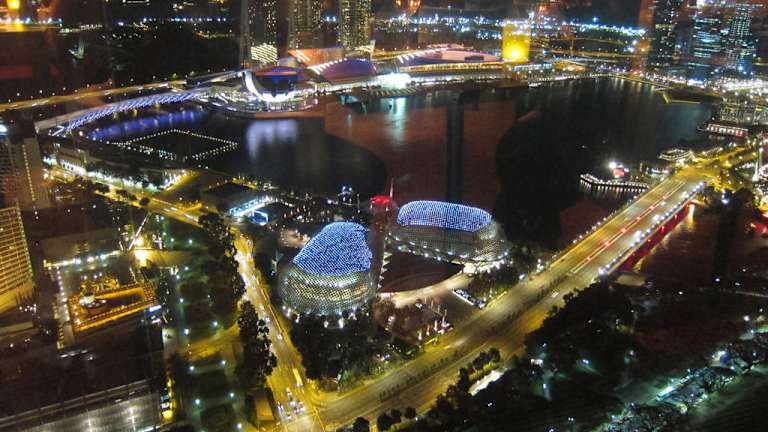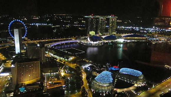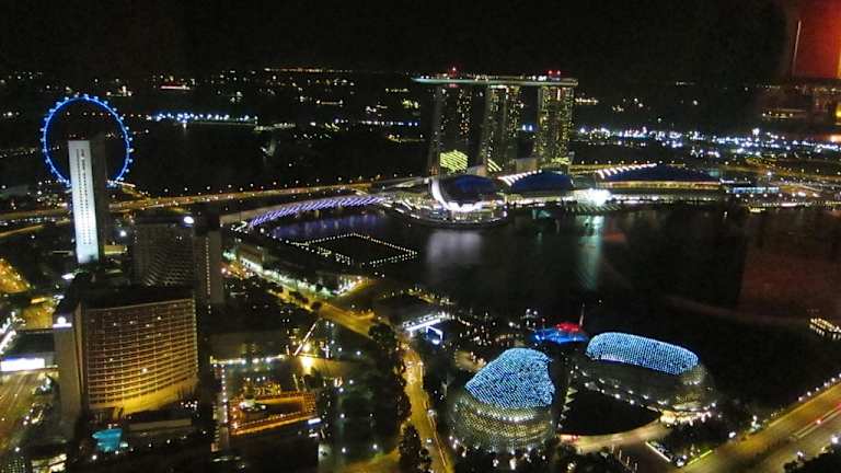 Phantastischen ausblick auf die Skyline von Singapur. Bei gutem Wetter sieht man bis Malaysia und Indonesien.