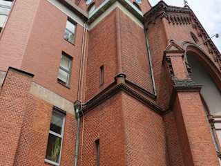 Die alte evangelische Emmauskirche in Berlin Kreuzberg am Lausitzer Platz, die zwischen 1890 und 1893 erbaut wurde, wurde im Zweiten Weltkrieg weitgehend zerstört. Nach dem Zweiten Weltkrieg wurde das zerstörte Kirchenschiff vollständig abgetragen, der Turm blieb aber weitgehend erhalten. Die heutige Emmauskirche, genauer gesagt das Kirchenschiff, wurde zwischen 1957 und 1959 errichtet, wobei der Turm der Alten Emmauskirche mit in den Neubau integriert wurde. Die aus rotem Backstein errichtete Emmauskirche mit ihrem hohen Turm beherrscht den Lausitzer Platz. Wir sind auf unserem Weg vom Rio-Reiser-Platz (ca. 750 Meter von der Emmauskirche entfernt) zur Oberbaumbrücke (ca. 1 km von der Emmauskirche entfernt) zufällig an dieser auffälligen Kirche vorbeigekommen und sie hat uns gut gefallen. ACHTUNG: Diese Emmauskirche in Kreuzberg nicht verwechseln mit der Emmaus-Kirche im Ortsteil Zehlendorf.