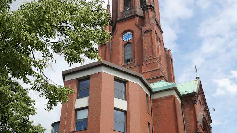 Die aus rotem Backstein erbaute Emmauskirche