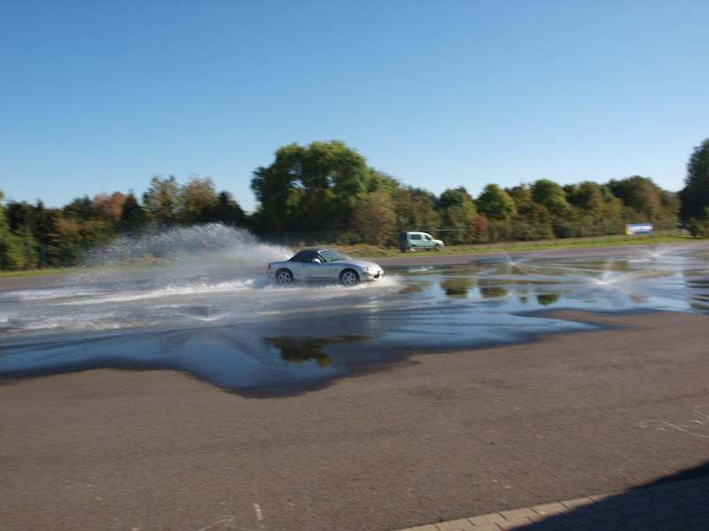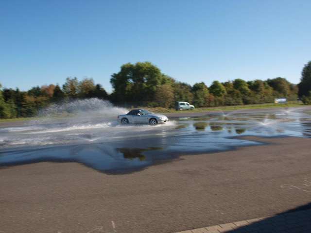 Wir haben zusammen mit unseren 18 u. 22 Jahre alten Söhnen ein "Generationstraining" im Fahrsicherheitszentrum Grevenbroich gemacht. Es handelt sich hierbei um ein Intensivtraining an einem Sonntag von 8.30 h - ca. 18.00 Uhr. Wir waren vorher skeptisch ob es uns gefallen wird und wir einen nutzen von dem ganzen Tag ziehen. Soviel vorweg: es hat sich gelohnt! Der Tag war bestens organisiert. Es gibt 10 oder 11 Schulungsräume, die fast alle belegt waren. Wir waren mit einer Gruppe von 12 Personen, immer ein Elternteil und ein Fahranfänger bzw. Neuling (ca. von 18 - 22 Jahren) Es waren übrigens auch 2 Mütter mit ihren Söhnen dort, also nicht nur als Männerveranstaltung zu sehen;-). Es begann mit 1 einem Theorieteil und danach ging es auf den Platz, es fanden verschiedene Brems- und Ausweichmanöver statt. Begonnen hat übrigens draussen alles mit der richtigen Sitzposition - ich glaube die meistens von uns sitzen sonst anders im Auto, werden aber über den Tag darüber nachdenken und es vielleicht auch umsetzen. Es folgte wieder ein Theorieteil und dabei wurde das Mittagessen aufgenommen, welches allerdings exklusiv ist. Der nächste praktische Teil war schon anspruchsvoller, es ging auf die nasse Bahn, mit Ausweichen vor plötzlich hochschießenden Wassersäulen (gut das es keine Betonwand war...). Danach das gleiche nochmal, aber eine Rüttelplatte löste nun am Heck ein Ausbrechen des Fahrzeugs aus, und wir lernten über ständige Funkansagen des Trainers, das Fahrzeug zu stoppen oder/und auch zu kontrollieren und somit abzufangen. Nach der Mittagspause in dem netten Restauranbereicht mit leckerem Essen, ging es weiter und nach dem letzten Theorieteil ging es in die Kurvenbereiche, naß und trocken mit unterschiedlichen Belägen - die zum Teil Schnee- und Eisverhältnisse nachmachten. Hier tasteten wir uns langsam an unseren Grenzbereich und überschritten ihn leicht, um die PKW-Reaktion abzuwarten und mehr oder weniger zu kontrollieren. Wir waren schon alle sehr überrascht wieviel km ausreichen um die Kontrolle über das Fahrzeug zu verlieren oder mühsam wieder zu erlangen. Das letzte Training war eine doch schon schnelle Kurveneinfahrt mit 50km/h und dann in der Kurve und auf nassem Untergrund das Fahrzeug zu kontrollieren und scharf abzubremsen. Es bleibt zu sagen, das es ein informativer und interessanter Tag war - wir viel gelernt haben und in netter Runde ein interessanter Austausch stattgefunden hat. Wir alle hofften, das wir zwar vorbereitete sind - aber niemand diese Situationen im Straßenverkehr haben möchte, denn hier hatte alle viel Platz zum Ausweichen und zum Reagieren noch die ein oder andere Anmerkung des Trainers. Der Preis mit 155,00 € war nicht günstig, aber ich denke es war den Preis wert - zumal unsere Jungs Gutscheine als Jung-Mitglied hatten und den Kursbeitrag nicht bezahlen mußten. ....auch heute haben wir alle die Sitzposition im Fahrzeug so gelassen wie gestern gelernt - ich habe auch gestern erfahren, dass ich aus meiner bisherigen Position niemals so hart die Bremse hätte tretten können, da mir durch die Nähe an Lenkrad und Pedalen die Kraft des Beines gefehlt hätte..... Ich kann dieses Kurs allen PKW-Empfehlen. Die Aktionen die gestern dort stattfanden haben uns überrascht. Der ganze Platz war ständig in Bewegung, es waren ganz viele unterschiedliche Gruppen zum Teil auch Firmenwagen ihre Runden und Übungen fuhren, bis hin zu Fortgeschrittenengruppe die etwas andere und schnelle Übungen fuhren. Vielleicht werden wir uns im nächsten Jahr auch den Aufbaukurs vornehmen - das Angebot ist dazu sehr umfangreichen. Das traumhaft sonnige Herbstwetter hat gestern genauso den Tag abgerundet wie die homogene Gruppe und der nette Trainer!