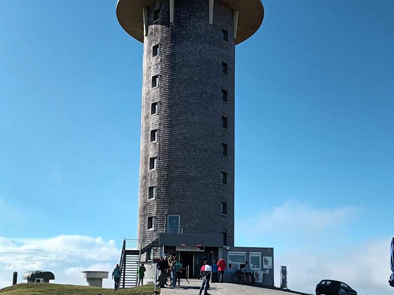 Man braucht ca. 45 Minuten, zu Fuß, vom Haus der Natur bis zum Feldbergturm, mit der Feldbergbahn wenige Gehminuten. Ursprünglich wurde der Feldbergturm als Funkturm errichtet. Inzwischen gehört er jedoch der Gemeinde Feldberg, beherbergt ein Schinken-Museum und öffnet im Sommer als Aussichtsturm. Ein Aufzug bringt einen in den 11. Stock. Von dort hat man eine spektakuläre Aussicht auf die Schweizer Alpen, die Vogesen und dem Mont Blanc-Massiv.