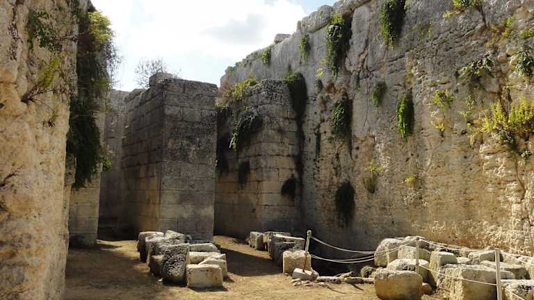 Festungsanlage mit tollem Blick auf Syracus, unterirdische Gänge die an das mal vorhandene Labyrinth erinnern.