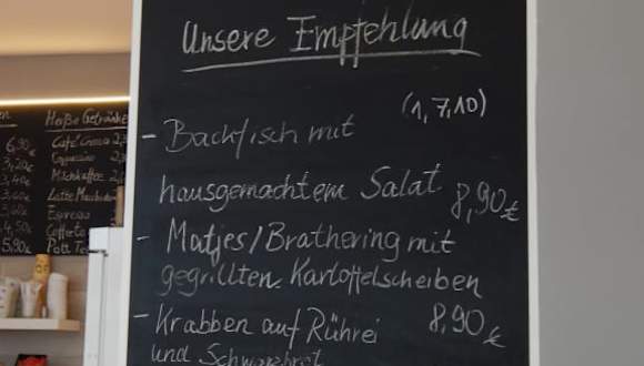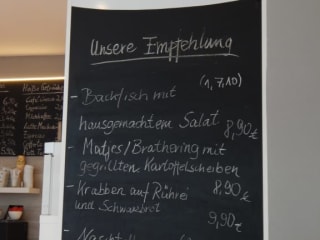 Kleiner feiner Fisch-Imbiss, es gibt Fischbrötchen und kleine Speisen - welche auf dem Teller eine vollwertige Mahlzeit werden... Alles wird je nach Kundenwunsch frisch zubereitet. Die Beratung dabei ist einmalig und super freundlich. Man kann drinnen oder draußen in der Fußgängerzone sitzen und die leckeren Speisen genießen.