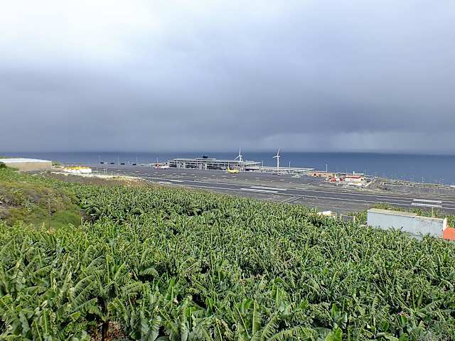 Der Flughafen von La Palma empfängt den Reisenden mit nüchternem Beton, Grau in Grau, und langen Gängen, die einen schnell zur Gepäckabholung führen. Dort herrscht eine Tristesse, die eines Flughafen auf so einer schönen Insel nicht gerecht wird. Ein wenig mehr "Willkommen" wäre schön. Die Gepäckbänder rollen schnell nach der Ankunft an, es sind ja auch keine langen Wege für das Gepäck vom Flugzeug, allerdings hakt es hier doch erheblich. Mehrmals musste das Band angehalten werden, weil sich die Koffer am Anfang verkeilt hatten. Wenn man einen Mietwagen gebucht hat, findet man die Schalter direkt neben den Gepäckbändern, noch bevor man den Zollbereich verlässt. So kann man sich ums Auto kümmern, während das Flughafenpersonal das Kofferknäuel entwirrt. Draußen ist die Halle auch sehr nüchtern, aber man ist schnell zum Parkhaus oder zum Wartebereich der Abholer gelangt. Bei der Abreise wird einem dann erst richtig bewusst, dass der neue Flughafen völlig überdimensioniert ist, denn geschätzte 80% der möglichen Läden stehen leer. Es gibt, wie am alten Flughafen, einen kleinen Duty-Free-Shop, ein kleines Schnellrestaurant, ansonsten gähnende Leere... Eine Aussichtsterrasse gibt es auch nicht mehr, auf der man sich am alten Flughafen noch sehr gut aufhalten konnte, wenn man auf den Abflug wartete. Insgesamt ein Flughafen, dem jegliche Aufenthaltsqualität fehlt, da ändern auch die verstreut aufgestellten bunten Polstergruppen nichts. Man wünscht sich nur "Hoffentlich hat der Flug keine Verspätung".