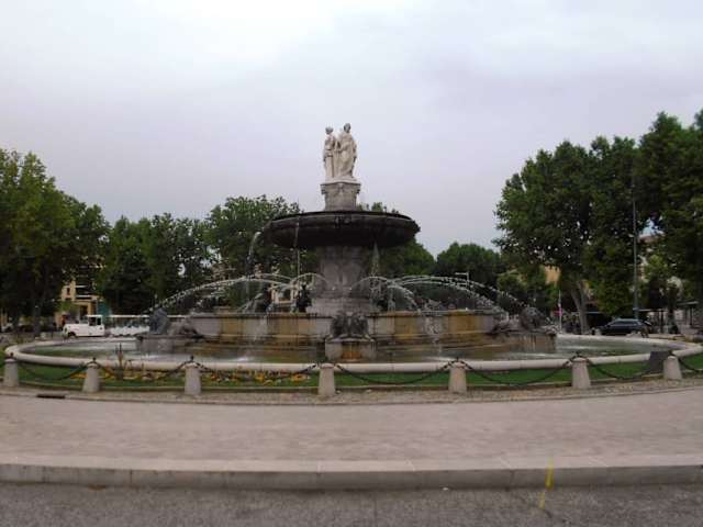 Nachdem der großzügige Kreisverkehr zwischen 1840 und 1850 angelegt war, wurde in der Mitte des neuen Verkehrsknotenpunkts 1860 der 12 Meter hohe Brunnen erbaut, der mit Löwen, Delfinen, Schwänen und Kindern dekoriert ist. Im Zentrum der oberen Brunnenschale stehen drei Statuen, die auf die am Kreisverkehr zusammenlaufenden Hauptverkehrsadern ausgerichtet sind: Gerechtigkeit (in Richtung Cours), Landwirtschaft (in Richtung Marseille) und Bildende Kunst (in Richtung Avignon).