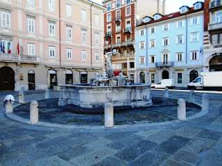 In der Mitte des Platzes „Piazza del Ponterosso“ am Ende des Canal Grande steht dieser schöne Brunnen, der 1753 erbaut wurde. Der Brunnen war an die von Kaiserin Maria Theresia erbaute Wasserleitung angeschlossen, die das neue Handelsviertel um den Canal Grande versorgte. Heute findet man auf dem Platz um den Brunnen einen Markt, auf dem Bauern aus der Umgebung ihre Produkte anbieten.