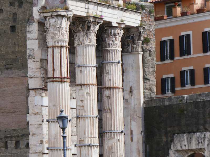 Das Augustus Forum kann man gut von der Via dei Fori Imperiali sehen, auch sehr ut , falls man eine Kamera hat, die ein Teleobjektiv besitzt. Es zählt zum zweiten Forum von den vier Foren, also auch zum Forum Romanum. Augustus der vorher Oktavianus genannt wurde, zählt auch zu den Rächern , die den Mord an Julius Caesar begangen hatten. Die beiden Mörder Brutus und Cassius waren mit ihren Heeren nach Griechenland geflüchtet, in der "Doppelschlacht" wurden auch beide getötet. Als Folge davon konnte sich Oktavianus zum Kaiser Augustus krönen lassen.