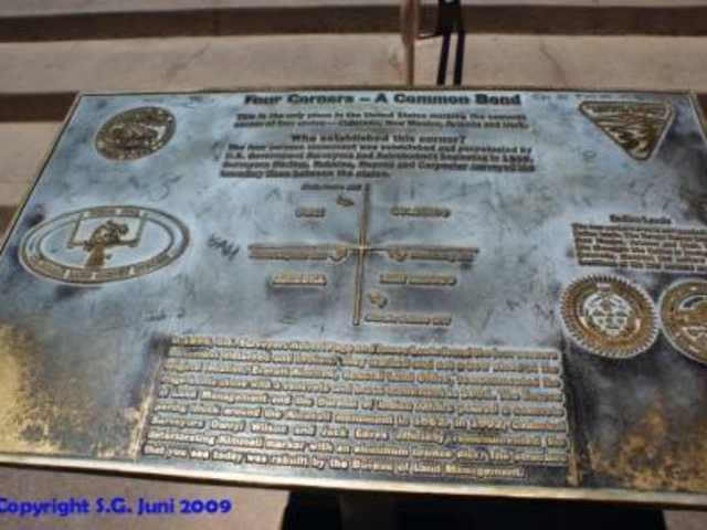 Wer im Westen der USA auf dem Weg vom Mesa NP zum Monument Valley ist, der kommt vorbei am Four Corners Monument und hat die einmalige Chance in vier US Bundesstaaten (Utah/ Colorado/ Arizona und New Mexico) gleichzeitig zu stehen. Four Corners ist der einzige Punkt der USA, wo die Grenzen von vier Bundesstaaten aufeinandertreffen und genau das macht diesen Punkt als touristische Anlaufadresse so interessant. Möglichkeiten dies im Foto gebührend festzuhalten gibt es ausreichend. Der Punkt befindet sich auf dem Gebiet der Navajo Indianer und ein Eintritts – Obolus ist notwendig, um das Gefühl von vier US-Bundesstaaten gleichzeitig unter seinen Füßen spüren zu können. Eine Reihe von Souvenirständen, die indianischen Schmuck und eine ganze Menge Nippes anbieten, gibt es am Four Corners Monument. 60 Minuten (max.) Verweildauer sollten eingeplant werden. Mögliche touristische Anschlussziele (Top Tipps): Monument Valley (Utah/ Arizona), Mesa Verde NP (Colorado), Arche NP (Utah).