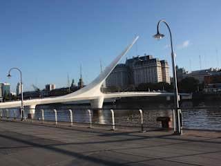Die einem tanzenden Tangopaar nachempfundene und am 20.12.2001 eingeweihte Fußgängerbrücke "Puente de la Mujer" im Stadtteil Puerto Madero wurde nach den Plänen des spanischen Architekten und Ingenieurs Santiago Calatrava aus Valencia errichtet. Das insgesamt etwa 160 Meter lange Brückenbauwerk hat zwei statische und einen mobilen Abschnitt. Der etwa 100 Meter lange bewegliche Teil kann, sobald ein Schiff oder ein Boot die Brücke passieren will, mittels eines computergesteuerten Motors innerhalb zwei Minuten um 90 Grad gedreht werden, um das Fahrzeug durchzulassen. Die Brücke wurde von der Firma URSSA in Spanien gebaut und per Schiff nach Buenos Aires gebracht.