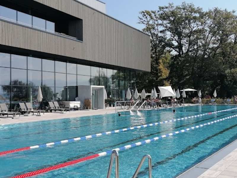 tolles Schwimmbad mit Seezugang und fantastischem Blick! Mit Sportbecken und vielen Features, z.B. Pumpe für Boote. Kulinarisch eher bescheiden.