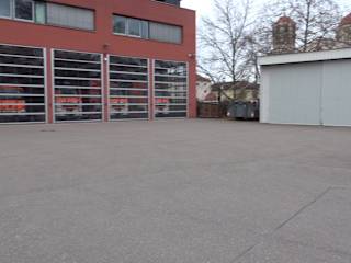 Die Freiwillige Feuerwehr Esslingen am Neckar Abt. Stadtmitte hat ihre neue Hauptfeuerwache entlang der Bahnlinie, in den Pulverwiesen. Sie wurde im Juni 2008 eingeweiht. Es ist ein modernes Gebäude, mit einem hohen Turm. Es ist dreistöckig. Im Erdgeschoß sind 17 Einstellboxen für die Einsatzfahrzeuge. Adresse: Pulverwiesen 2, 73728 Esslingen am Neckar Webseite: http:// feuerwehr. esslingen. de/ Geodaten: P8M7+P3 Esslingen am Neckar