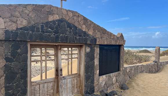 Direkt am großen Parkplatz des Strandes von Cofete steht man vor einer Holztür, eingelassen in einen steinernen Torbogen und dahinter befindet sich ein Relikt aus einer Zeit lange vor dem Zeitalter des Tourismus: Der Friedhof von Cofete. Immerhin war Cofete über eine lange Zeit ein zwar bewohnter, aber dennoch sehr weit abgelegener Weiler und die Toten des Ortes bestattete man daher auf dem kleinen Friedhof direkt am Meer. Heute ist der Friedhof aufgelassen, die Gräber sind nur noch durch Lavasteine im Sand zu erkennen und an mancher Stelle steht lediglich ein improvisiertes Holzkreuz ohne einen Namen. Vor dem Friedhof sind alle dort bestatteten Bewohner des Ortes auf einer Marmortafel festgehalten und ein Rundgang zwischen verwehtem Sand, Wüstenpflanzen und den schlichten Holzkreuzen hinterlässt Eindruck und macht nachdenklich.