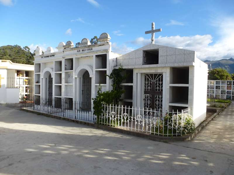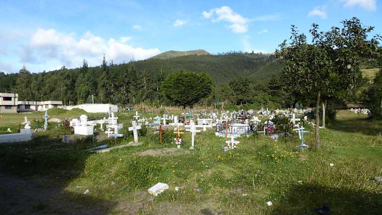 In dem Ort San Pablo del Lago sgen sich Fuchs und Hase gute Nacht, außer der Feuerwehrstation hat der Ort nichts zu bieten. Der Friedhof war ganz in der Nähe unserer Unterkunft Hacienda Cusin, so das wir dort hin einen schönen Spaziergang unternehmen. Der Friedhof ist recht gepflegt, man sieht aber auch hier die Unterschiede, Leute mit Geld finden die letzte Ruhe im Mausoleum, Leute ohne Geld sind dahinter auf dem Acker begraben. Um sich in Ruhe die Mausoleen anzusehen benötigt man ca. 60 Minuten.