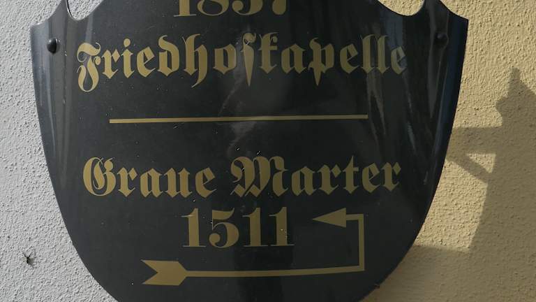 Auf dem Weg vom Ortszentrum von Sommerach zu den Weinbergen am Engelsberg befindet sich in der Straße „Zum Engelsberg“ der örtliche Friedhof mit der ehemaligen Friedhofskapelle. Wie ein Schild verrät, stammt diese Kapelle aus dem Jahr 1837. In der Friedhofskapelle steht die Graue Marter, welche als der wichtigster Bildstock Unterfrankens und als einer der bedeutendsten Bildstöcke aus der Zeit der Spätgotik überhaupt gilt.