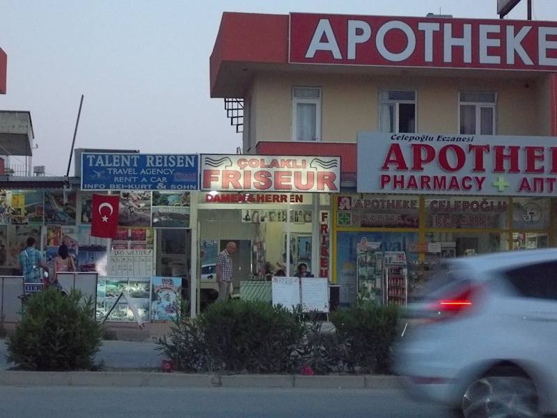 Colakli Friseur Inhaber: Ferhat Sahiner Adresse: Tilkiler Mevkii Doktorlar Sitesi No: 8 Colakli Manavgat Wir waren schon mehrfach da. Sehr guter Friseur. Keine überzogenen Preise. Zu finden ist er gegenüber Hotel Club Side Coast. Links daneben ein kleines Reisebüro, rechts davon eine Apotheke.