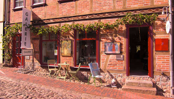 Auf einem Spaziergang durch Waren entdeckten wir in der Schulstraße (Nebenstraße der Einkaufszone) eine kleine Galerie und davor einen bunt bemalten alten Zigarettenautomaten. Hier kann man für 3,- € eine "Schachtel mit Originalkunstwerk" ziehen. Der Besitzer der Galerie hat immer Kleingeld zum Wechseln bereit und gibt auch schon mal Tipps, wo die Auquarelle oder Federzeichnungen stecken könnten. Aber im Prinzip muss man sich überraschen lassen und dann kommt eine Schachtel heraus mit einem kleinen Originalbild, natürlich handsigniert und eine kleine Beschreibung des Künstlers. Ein tolles und preiswertes Souvenir! Wir haben direkt mehrere Kunstwerke gezogen als Mitbringsel für Freunde.