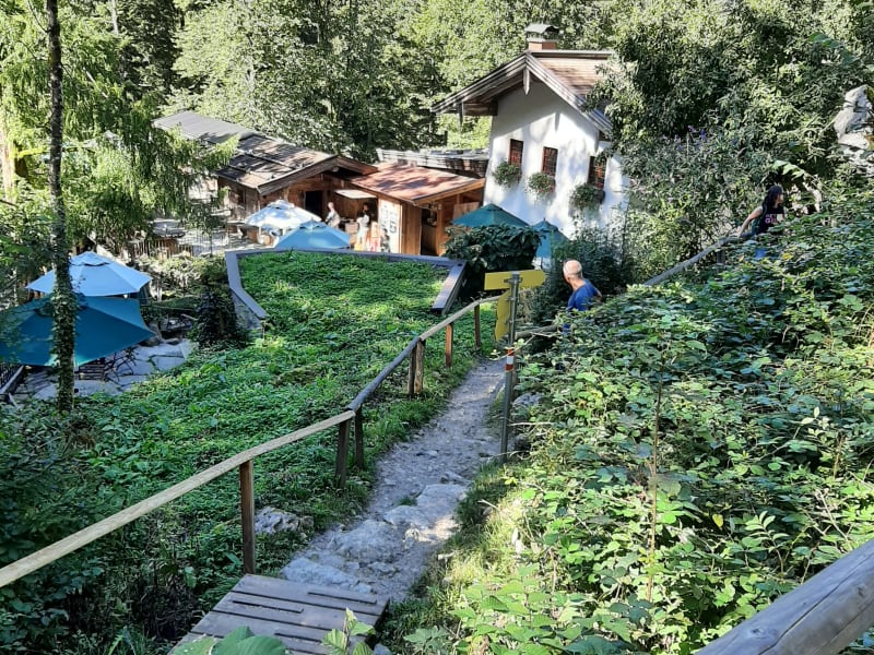 Ratsam wäre es eine eigene Brotzeit mitzubringen und gemütlich am Fluss zu picknicken. Das Essen im Gasthaus klobenstein war leider sehr enttäuschend. 1 einziges Tentakel war zwar zart, aber schwamm einsam in viel zu viel Öl mit reichlich extra scharfen Chili. Dazu gab es ein lediglich eine Stange foccacio, sonst nichts. So lieblos verliert es sich auch beim Bio-Schnittlauch Käsebrot. Purististisch auf Schieferplatte angerichtet zwei Scheiben Graubrot und zwei Scheiben Schnittlauchkäse und eine Miniportion Butter. Auf unsere Nachfrage, ob es denn etwas Gemüse oder zumindest eine saure Gurke gäbe wurde dies verneint. Der Kaiserschmarren wurde mit Pflaumenmarmelade gereicht und schmeckte mehlig . Rosinen waren auch nicht darin. Vegetarier oder Veganer finden eigentlich kein passendes Angebot . Getränke waren gut österreichisches Weißbier und eigenes Quellwasser - 1 Liter kostet 3,50€! Der Platz ist zum sitzen sehr idyllisch. Über das Preisleistungsverhältnis und Speisenangebot sollte man noch einmal intensiv nachdenken.