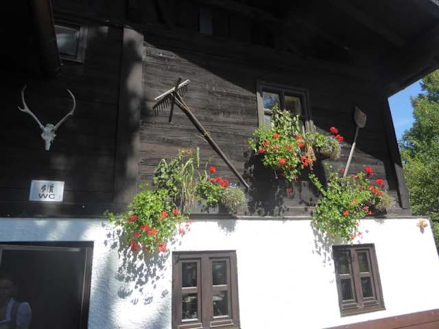 Bei unserer Mooswanderung in Murnau machten wir unsere Mittagspause im Gasthof Ähndl. Vor dem Gasthaus steht eine Hinweistafel mit folgenden Text: Speisen und Getränke. Der Verzehr von mitgebrachten Speisen und Getränke sowie die Speisen und Getränke von „Moos&Mahl“ sind im Biergarten untersagt. Wir hatten bei der Platzsuche im Biergarten sehr viel Glück, trotz sonnigen Wetter, fanden wir noch einen schattigen Platz. Die nette junge Bedienung brachte uns sofort die Speise- und Getränkekarte. Wir haben uns für gefüllte Teigtaschen mit Pilze,Kräuter und Parmesan (14,50 Euro) und Ähndls Kaiserschmarrn mit Apfel, Preiselbeeren und Vanille (12,50 Euro) entschieden. Unsere Freunde haben ebenfalls gefüllte Teigtaschen und Ähndls Krustenbraten vom Wammerl mit Kartoffelknödel, Weißkrautsalat und Karg-Biersauce (16,50Euro). Als Getränk bestellten wir je eine Halbe Helles (4,20 Euro). Die Getränke wurden uns nach 5 Minuten auf die Speisen mussten wir etwa 20 Minuten warten. Sehr nett fand ich die Beilage bei der Speisekarte, hier war zu lesen: Ihr habt den Weg zu uns gefunden, genießt nun die schönen Stunden. Esst und trinkt so viel es geht, für ein Schnapserl ist es nie zu spät. Frisches Essen braucht seine Weile, sicher habt ihr keine Eile. Ob Fisch, ob Fleisch, Süßes Allerlei, für jeden ist etwas dabei. Kommts bald wieder, bleibts gesund. Bis nächstes Mal in froher Rund. Die Qualität der Speisen war sehr gut, alles auch ansprechend angerichtet. Das Wetter spielte an diesem Tag mit, so dass wir im idyllischen Biergarten mit Blick ins Murnauer Moos einfach nur genießen konnten. Der Service war sehr freundlich und auch das Essen hat uns gut geschmeckt. Wir hatten keinen Grund zu nörgeln. Schön fand ich auch die bayrischen Wandbilder im Hausgang vor der Toilette. Neben der Gaststätte befindet sich auch ein Kinderspielplatz und das bekannte Ramsachkircherl.
