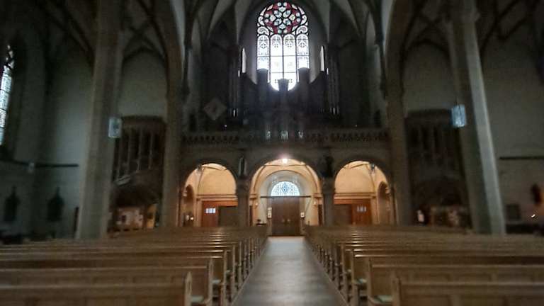 Große unbekannte Kirche mit Wow Effekt Nicht alt wie der Dom aber die Glasmalereien sind beeindruckend und schön und auch zahlreich Auch Rossettenfenster Ebenfalls Ausstellung über Luther und Infoplakate über die Kirche