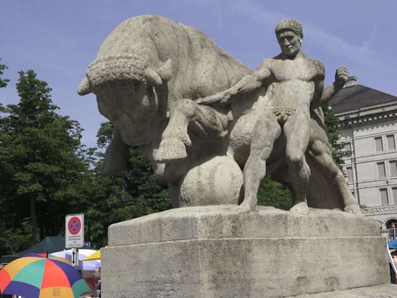 Eigentlich heißt er Stierbändiger-Brunnen, aber bekannt ist er als Geiserbrunnen. Er erhielt seinen Namen zu Ehren und im Andenken an ehemaligen Stadtbaumeister von Zürich, Arnold Geiser. Er schenkte der Stadt Geld, mit der Auflage, einen Brunnen, zur Verschönerung der Stadt, zu bauen. Er wurde 1911 eingeweiht. Sein Standort ist der Bürkliplatz.