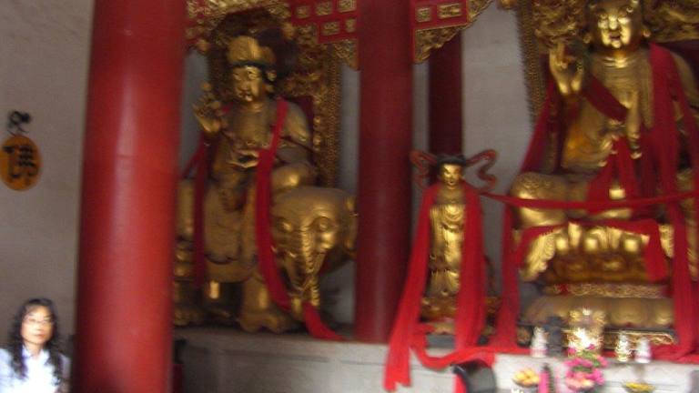 Am zweiten Tag unserer Schiffsreise auf dem Yangtse besuchten wir die Geisterstadt Fengdu (171 Kilometer von Chongqing entfernt).Unser M.S. Blue Whale hatte auf der gegenüberliegenden Seite der Stadt Fengdu (mit 800.000 Einwohnern) angelegt. Wir wurden im 1. Abschnitt mit Elektrokarren nach oben transportiert. Von da ging der Fußmarsch weiter und nach 400 Stufen erreichten wir die "Geisterstadt", die auf dem 288 m hohen Tempelberg Ming Shan liegt. Auf diesem Ausflug, der ca. 2 Stunden dauerte, begleitete uns der Schiffsfotograf, der einen DVD-Film drehte und Bilder schoss.