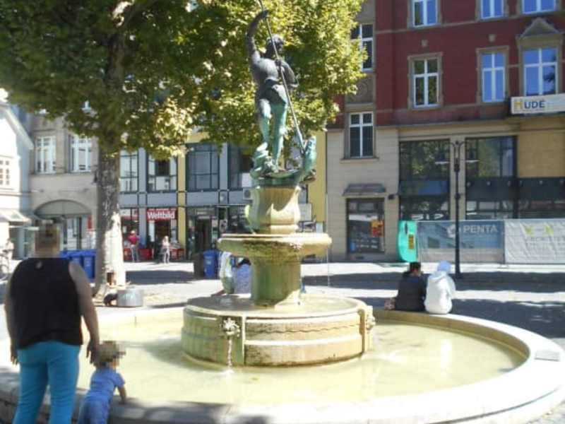Den Brunnen auf dem Neumarkt ziert die Bronzefigur des heiligen Georg, der einen Drachen tötet. Nach einer Inschrift wurde der Brunnen 1910 von Joseph Heppel gestiftet, der Unternehmer und ehrenamtlicher Beigeordneter der Stadt war.