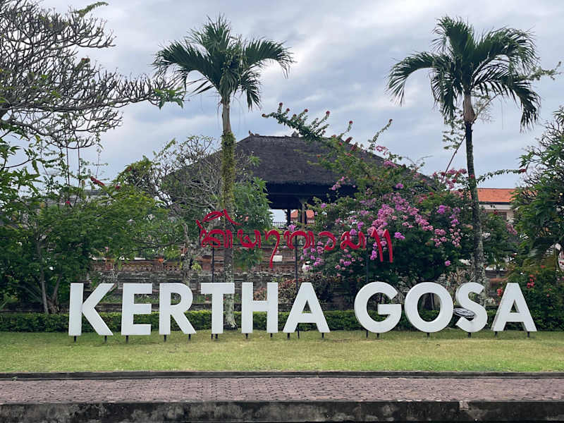 In einer kleinen Parkanlage steht eine große Halle, umgeben von einem Wassergraben, der schwimmende Pavillon Bale Kembang. Rechts vom Eingang, in der Ecke des Geländes, steht als zweites Gebäude die kleinere, eigentliche Gerichtshalle Bale Kerta Gosa, der oberste Gerichtshof Balis im 18 Jahundert. An der Decke dieses Gebäudes konnte man als Angeklagter, bereits auf sehr drastisch dargestellten Malereien erkennen, welche Strafe einen erwartete.