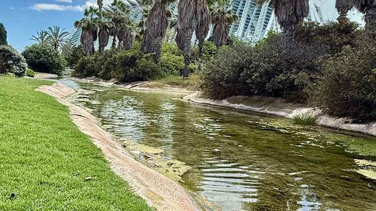 Der Park entlang des Flusses Turia schlängelt sich wie ein offener, grüner Gürtel durch die Stadt. Zum Teil findet man moderne Komponenten wie die futuristische Fußgängerbrücke, dann wieder historische Monumente.