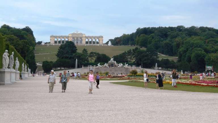 Der Spaziergang durch den Schlosspark zur Gloriette lohnt schon deshalb, um von der Aussichtsplattform auf dem Dach den Blick auf das Schloss, den Park und auf die Stadt Wien zu genießen. Außerdem kann man im Café im Gloriette eine kleine Pause einlegen. Wer den Anstieg auf den Hügel vermeiden möchte, kann mit dem Bähnchen fahren.