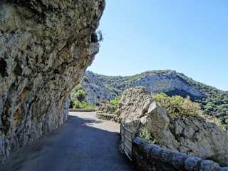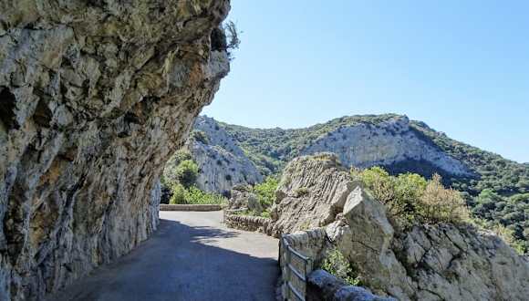 Oberhalb von Saint-Paul-de-Fenouillet liegt die Gorges de Galamus, eine mehr als beeindruckende Schlucht, die der kleine Fluss Agly über viele Jahrtausende in den Kalkstein gegraben hat. Die Schlucht von Galamus hat eine Länge von knapp 2 Kilometern und ist an vielen Stellen extrem eng und steil. Eine schmale Straße durchzieht die Schlucht in abenteuerlicher Höhe, wobei Überhänge und Engstellen eine Passage mit Wohnmobil oder Caravan unmöglich machen. Von Saint-Paul-de-Fenouillet auf der D7 kommend, parkt man praktischerweise das Auto auf einem großen Areal am Eingang zur Schlucht, um den Weg danach zu Fuß fortzusetzen. Schon vom Parkplatz erkennt man die Eremitage von Saint-Antoine, die an der Felswand klebt und über einen Serpentinenweg in etwa 30 Minuten zu erreichen ist. Bei der weiteren Wanderung durch die Gorges de Galamus, die inzwischen als Naturpark unter Schutz steht, kommt man im Norden zu einer schönen Badestelle und etwas weiter dann zur alten Mühle mit uriger Einkehrmöglichkeit.