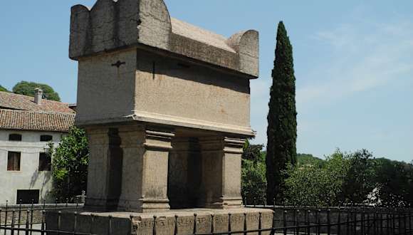 Um das Jahr 1380 wurde der ital. Dichter Frncesco Petrarca in diesem Grabmal (Ital. Tomba) zur ewigen Ruhe gebettet. Bevor er sich in Arquá niederliess, besuchte er auch die Quellen von Abano Terme, danach verbrachte er seine letzten Lebensjahre in Arquá. Dieses Grabmal aus Veroneser rosafarbenem Marmor wurde schon desöfteren geöffne,t um nach den verschimmelten Knochen zu suchen. Diese wurden dann entfernt. Das Marmorgrabmal steht unmittelbar auf dem Platz der Kirche Santa Maria Assunta.