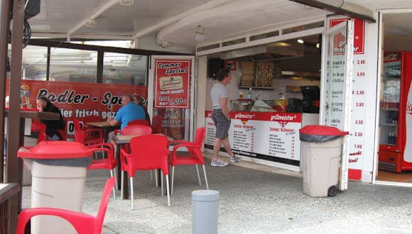wir haben hier gerne einen Stopp gemacht, da es bei diesem Grillmeister auch Sitzgelegenheiten an der Strandpromenade gibt. Bier frisch gezapft für 1,00 Euro. Bratwürst 2,90 Euro frisch und lecker.