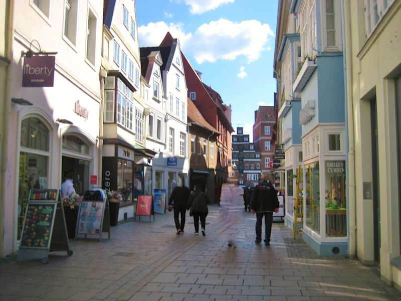 Die Große Bäckerstraße in Lüneburg ist ohne jeden Zweifel die (!) Shoppingmeile und wird durch das eine oder andere Geschäft am Markt noch vervollständigt. In diesem Bezirk findet man wirklich all die üblichen Marken - in kleineren Geschäften der jeweiligen Marke oder in einem der größeren Geschäfte wie P & C, H&M, usw. Man erkennt diese größeren Geschäfte aber nicht immer auf den ersten Blick, weil es keine hässlichen Riesenbauten sind, sondern sie ebenfalls in hübschen Häusern Quartier bezogen haben. Fand ich sehr gut. Man findet in der Straße natürlich nicht nur Bekleidung, sondern auch so gut wie alles andere. Halt alles was das Herz begehrt. :-) Außerdem gibt es dort auch Geschäfte wie Tchibo, wo man nicht nur das eine oder andere Teil kaufen, sondern auch essen und trinken kann. Diese Straße ist selbstverständlich sehr gut besucht, wobei die Lage natürlich auch ideal ist - zwischen dem Markt und dem Platz „Am Sande“. Ein toller Blickfang ist dort die „Alte Rathsapotheke“ – sehr schön.