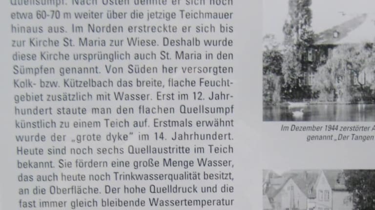 Nördlich vom Rathaus liegt der „Große Teich“. Man erreicht diesen wirklich schönen Teil der Altstadt ab Rathaus z. B. durch die Georgsgasse. Schon im 13. Jahrhundert soll hier das Wasser zum Betrieb der Teichsmühle gestaut worden sein, zuvor war dort Sumpfland. Gespeist wird der Teich von sechs Quellen, die lt. Info vor Ort Trinkwasserqualität haben. Weiterhin sorgt wohl u.a. die fast gleichbleibende Temperatur des Quellwassers dafür, dass der Teich im Winter nie ganz zufriert. Ein Highlight am Teich ist die „Soester Wippe“. Die lustige Geschichte dazu: Wenn ein Dieb in Gärten oder auf den Feldern gestohlen hatte, so wurde er bestraft, indem er – kahlgeschoren - die Wippe hochklettern musste. Irgendwann kippte dann die Wippe und der Übeltäter fiel ins Wasser, worüber sich die Zuschauer natürlich freuten. 1995 ist dieser Brauch wieder aufgegriffen worden – zum Spaß beim jährlichen Bürgerschützenfest. Wipp-Opfer sind prominente Einwohner der Stadt. Ob sie auch kahlgeschoren werden, ist der örtlichen Quelle nicht zu entnehmen. Ich nehme aber mal an, dass dies nicht der Fall ist. :-) Noch erwähnenswert: Nahe beim Südufer des Teichs findet man Infotafeln zum Soestbach, auch Kolkbach oder Loerbach genannt. An einem stadtauswärtigen Teil des Baches lag ehemals das Viertel der Lohgerber und Färber. Das Bachbett wurde damals eingegrenzt, eingedämmt (Name einer anliegenden Gasse - „Damm“), dann überbaut. Heute sind Teile des Baches freigelegt. Sieht hübsch aus und passt ins schöne Bild dieses Stadtteils. Ansonsten… schräg gegenüber der Soester Wippe liegt die Tourist Information. (Quellen: Infotafeln vor Ort. )