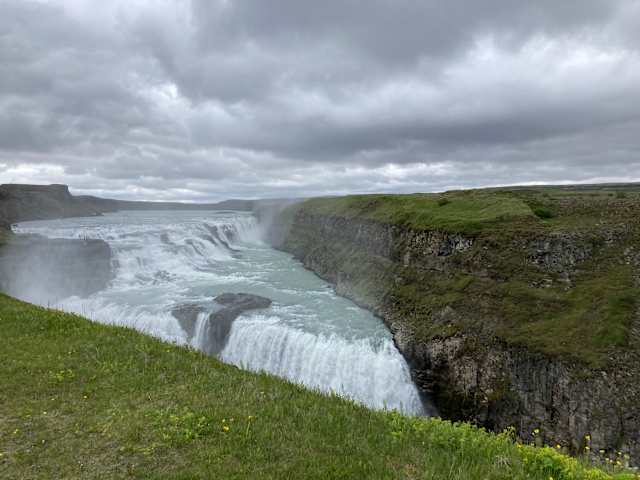 Der Gullfoss (goldene Wasserfall) ist einer der beliebtesten Wasserfälle Islands und befindet sich im Südwesten Islands. Von Reykjavik aus braucht man ca. 2h. Der Gullfoss ist ein sehr beliebtes Ausflugsziel, wir waren im Rahmen einer geführten Tour vom Kreuzfahrtschiff aus dort. Um die Mittagszeit waren neben unserer Gruppe über 20 weitere Busse da und viele Autos generell. Der Gullfoss ist dennoch beeindruckend und auf jeden Fall ein Highlight.
