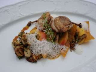 Im idyllische Innenhof sitzt man wunderschön - zum Teil unter einem großen Nußbaum. Auch die Innenräume sind geschmackvoll gestaltet - eine kleine Ausnahme war für mich der Wintergarten, wo ich die Einrichtung etwas kitschig fand. Das Essen ist recht gut, mit qualitativ hochwertigen Grundprodukten gekocht - besondere kulinarische Höhenflüge darf man sich aber nicht erwarten. Ich hatte den Lammrücken, der auch genau richtig war - innen noch rosa. Etwas unverschämt fanden wir die 4,10 fürs Gedeck - das bestand aus Brot ( man muß dazu ins Restaurant gehen, wo es ein Brotbuffet gibt) etwas Butter und Olivenöl und ein bißchen Speck.