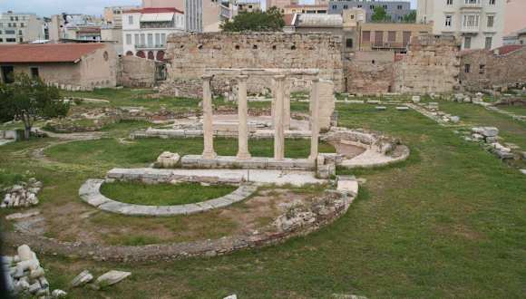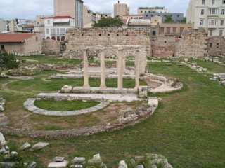 In jedem unserer Reiseführer wurde die Hadriansbibliothek kurz erwähnt, allerdings sei sie nicht zu besichtigen. Die Hadriansbibliothek ist eine antike Ausgrabungsstätte, auf der neben der Bibliothek unter anderem noch eine Kirche, Propyläen und prächtige Gartenanlagen ausgegraben wurden. Sie ist nun zur Besichtigung geöffnet. Es sind wie auch in der Römischen Agora nur noch Teile zu erkennen, die jedoch sehenswert sind.
