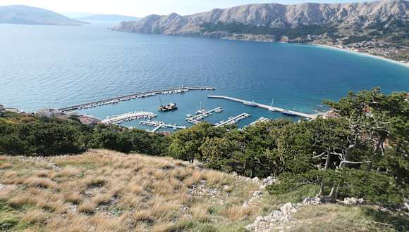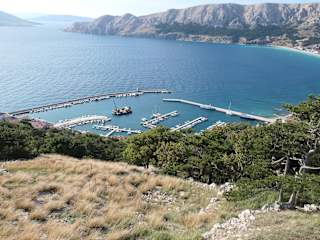 Wenn man von der Stadt Baška aus auf den Stadtstrand „Vela Plaza“ und auf das Meer blickt, befindet sich linker Hand der kleine Hafen von Baška, der ehemals der Fischerhafen von Baška war. Bei einer Wanderung hoch zum Mjesečev plato (Mondplateau), vorbei an der erhöht gelegenen Crkva Sv. Ivan, der Kirche des Heiligen Johannes des Täufers, hat man teilweise auch einen guten Blick auf den Hafen.
