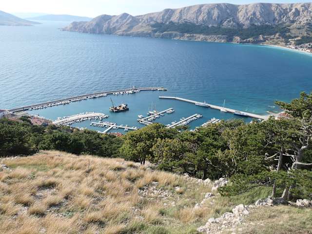 Wir hatten eine schöne Wanderung im Süden der Insel Krk vom Hafen von Baška hoch zum sogenannten Mjesečev plato (Mondplateau) unternommen. Unterwegs hatten wir beim Aufstieg bzw. beim Abstieg immer wieder einen fantastischen Blick hinunter auf die Bucht von Baška, auf den Ort Baška, zum Strand von Baška und auch zum Hafen von Baška. Von dem erhöhten Blick beim Auf- bzw. Abstieg zum Mondplateau wirkte der Hafen nach meinem Empfinden romantischer und sehenswerter als direkt Vorort.