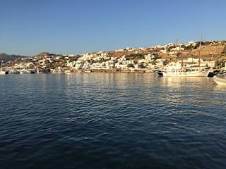 Dreh + Angelpunkt von Mykonos ist der Hafen , denn hier findet das eigentliche Inselleben statt . Auf dem Wasser dümpeln kleine Fischerboote + im Hintergrund liegen Jachten vor Anker . In der Ferne im neuen Hafen machen Kreuzfahrtschiffe station .Entlang der Hafenpromenade kann man in den zahlreichen Cafes + Tavernen die wunderschöne Atmosphäre mit Blick auf das Wasser genießen .