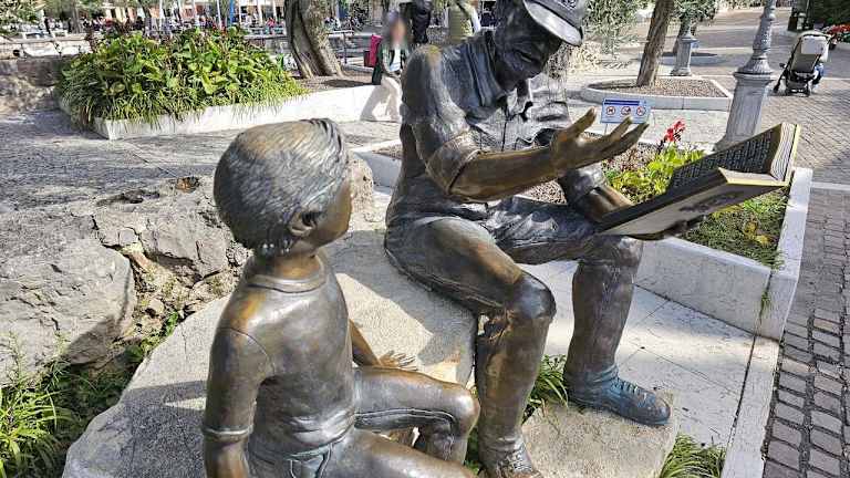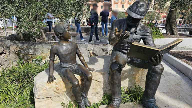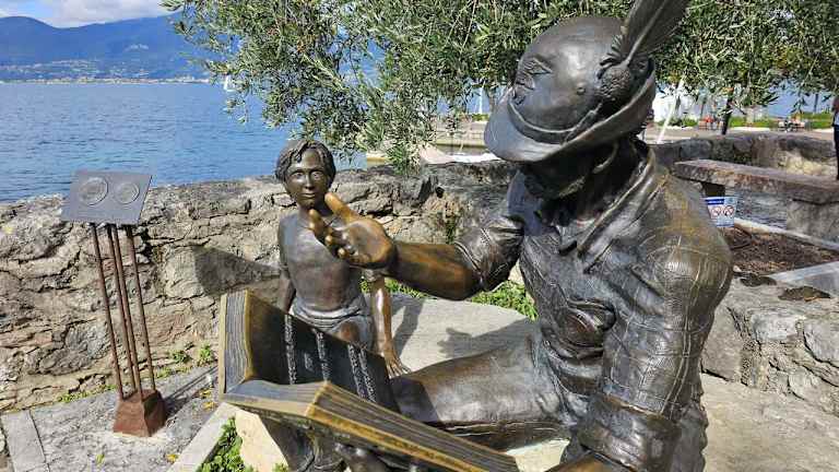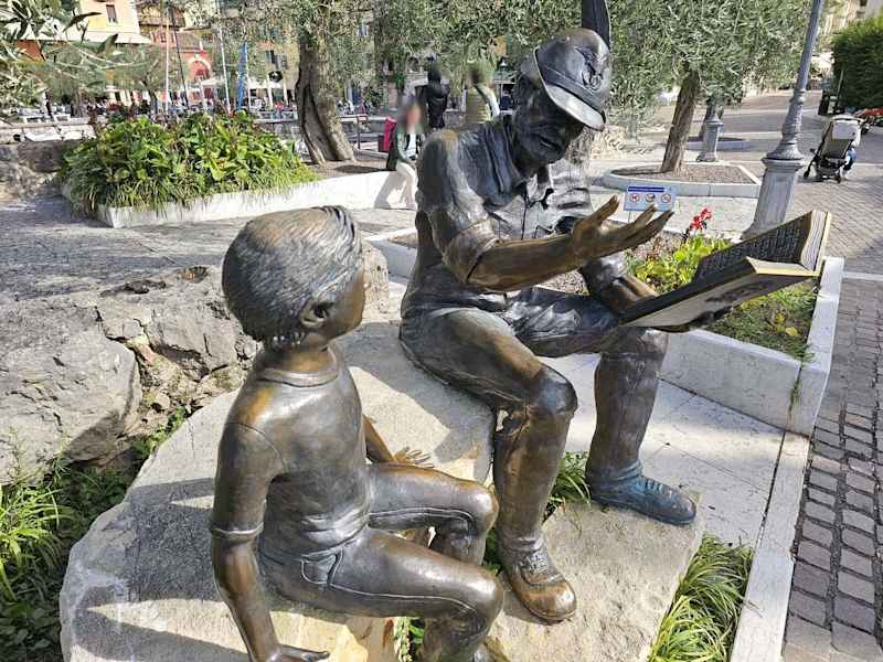 Ein kleiner malerischer Hafen in Torri del Benaco. Am Hafen befinden sich mehrere Geschäfte und Lokale. Sehenswert ist auf der Südseite die Statue Monumento all'Alpino. Es handelt sich um einen Soldaten der einem Jungen aus einem Buch vorliest und anhand der Handbewegung etwas erklärt. Ein beliebtes Fotomotiv.