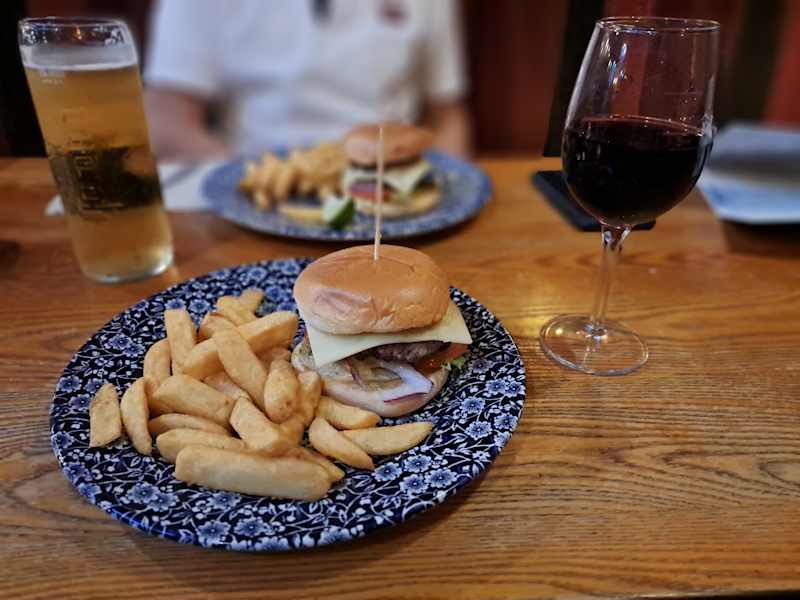 Waren mehrfach im Half Moon bei J.D. essen. Das Essen ist einfach und günstig. Bestellt wird per App oder an der Theke, dort dann auch bezahlt und die Kellnerin bringt es an den Tisch. Habe für Burger mit Pommes und einem Glas Rotwein nur 8 Pfund bezahlt und es hat gut geschmeckt. Es ist allerdings kein Restaurant, sondern eher eine Kneipe, rustikal eingerichtet.